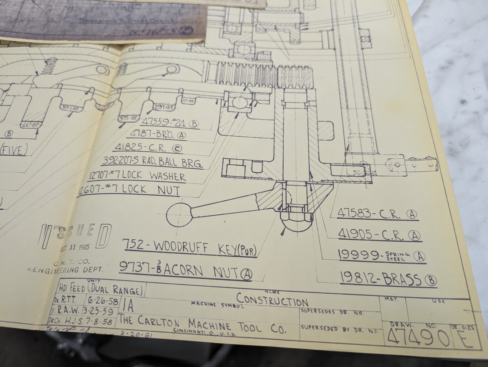 Carlton Machine Tool Company Construction Drawing Blue Print Diagrams