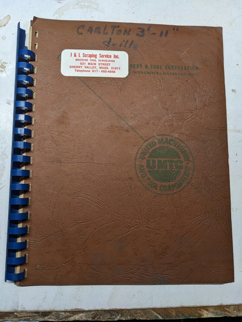 Carlton Machine Tool Radial Drill Service Parts List Book Old Copy 3′-11”