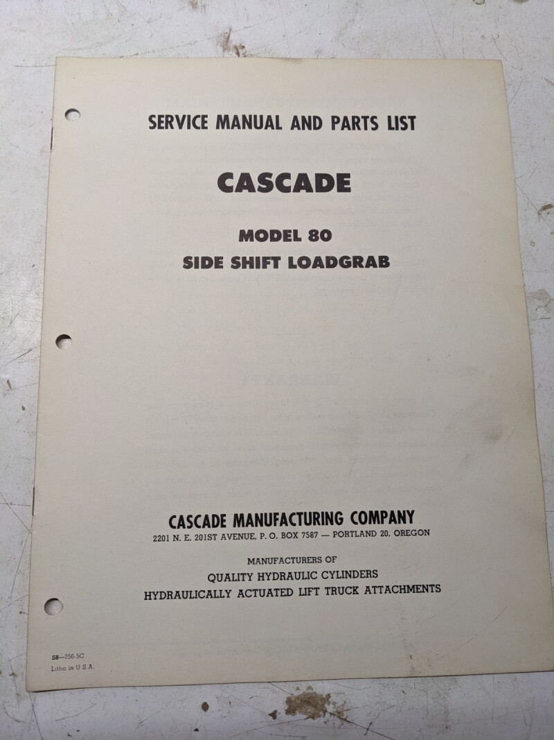 Cascade Lift Attachment Parts Manual Model 80 Side Shift Loadgrab
