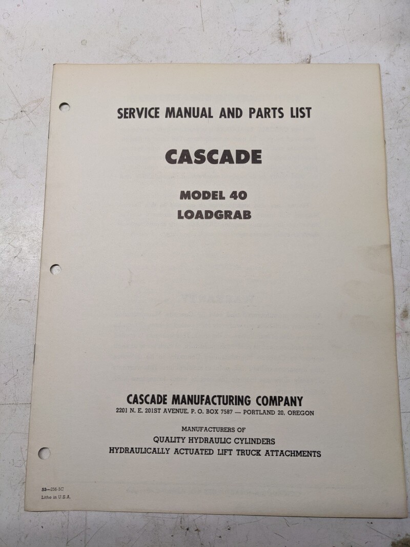 Cascade Lift Attachment Service Manual Parts List Model 40 Loadgrab