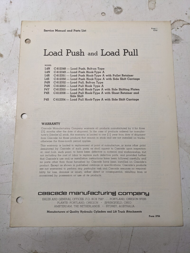 Cascade User Service Manual Parts List L4N L4R P4N P4Y P4R P4S Push Pull Load