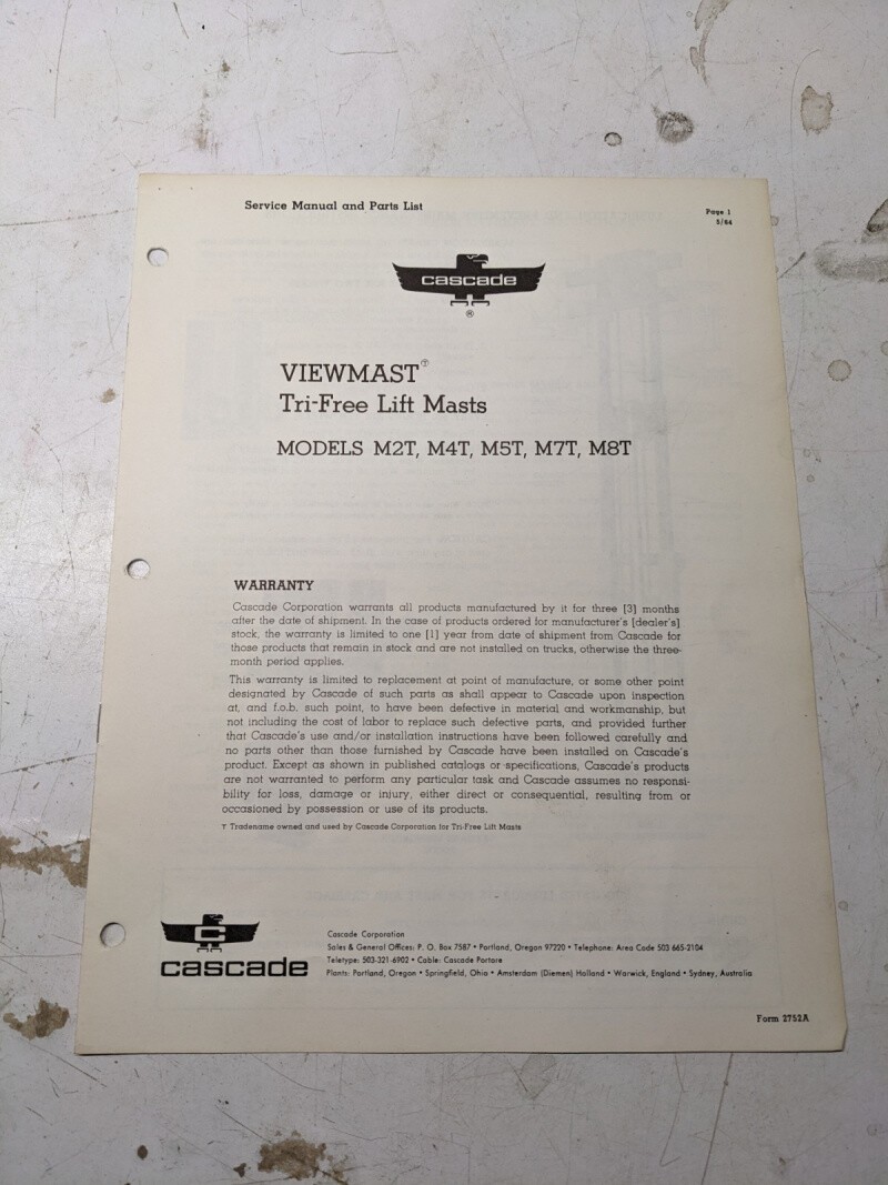 Cascade User Service Manual Parts List M2T M4T M5T M7T M8T 1964 Viewmast