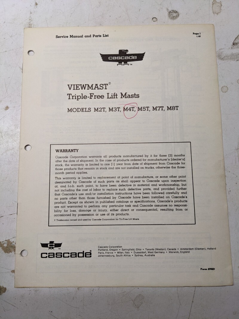 Cascade User Service Manual Parts List M2T M4T M5T M7T M8T 1967 Viewmast