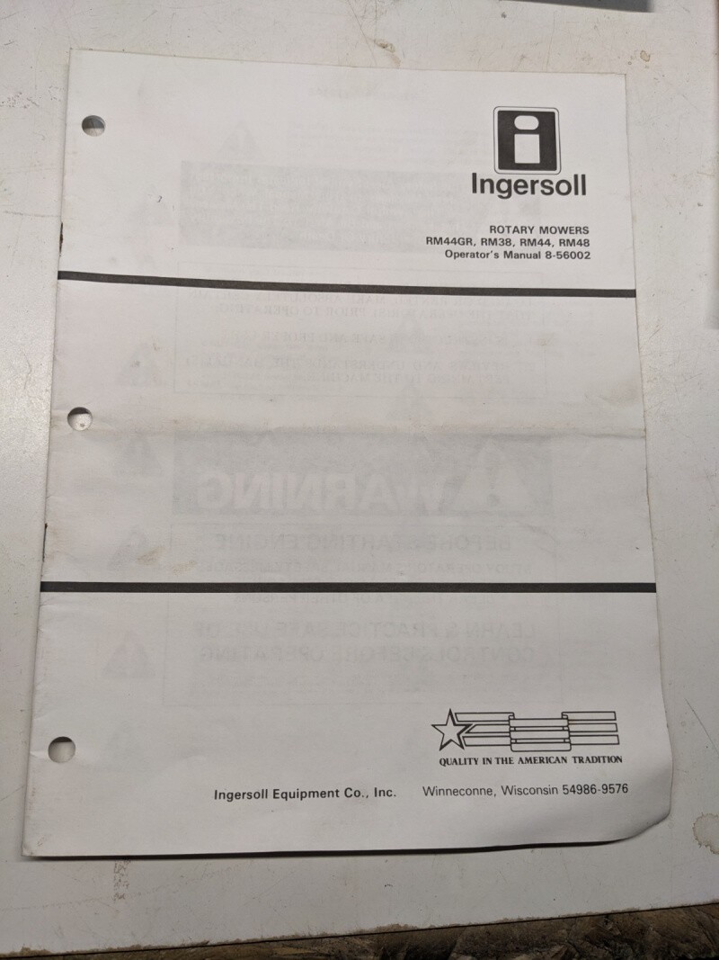 Case 8-56002 Tractor Ingersoll Operators Manual Rotary Mowers Rm 44 38 48 Gr