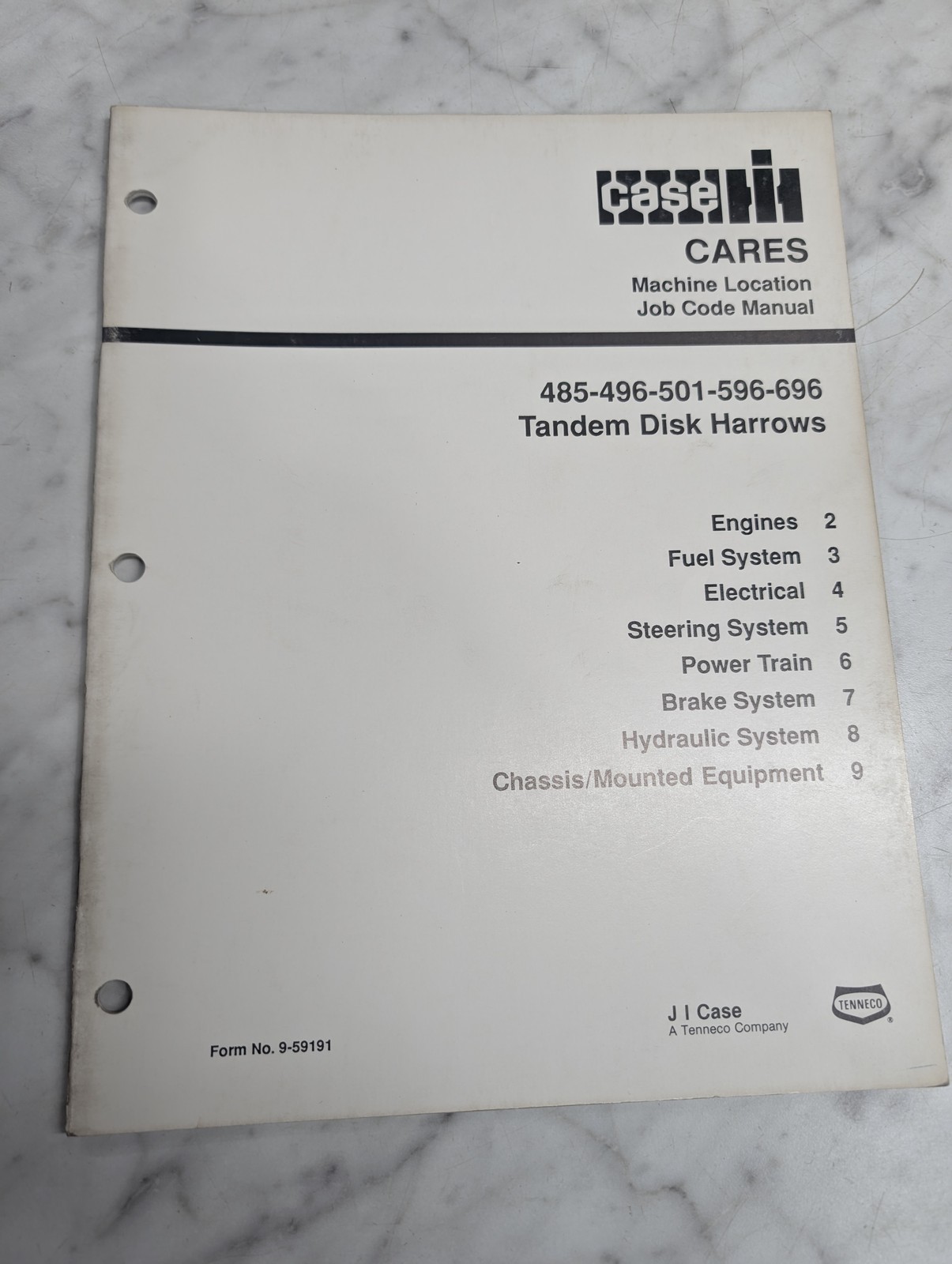 Case Cares Machine Location Job Code Manual 485 496 501 596 696 Disk Harrows
