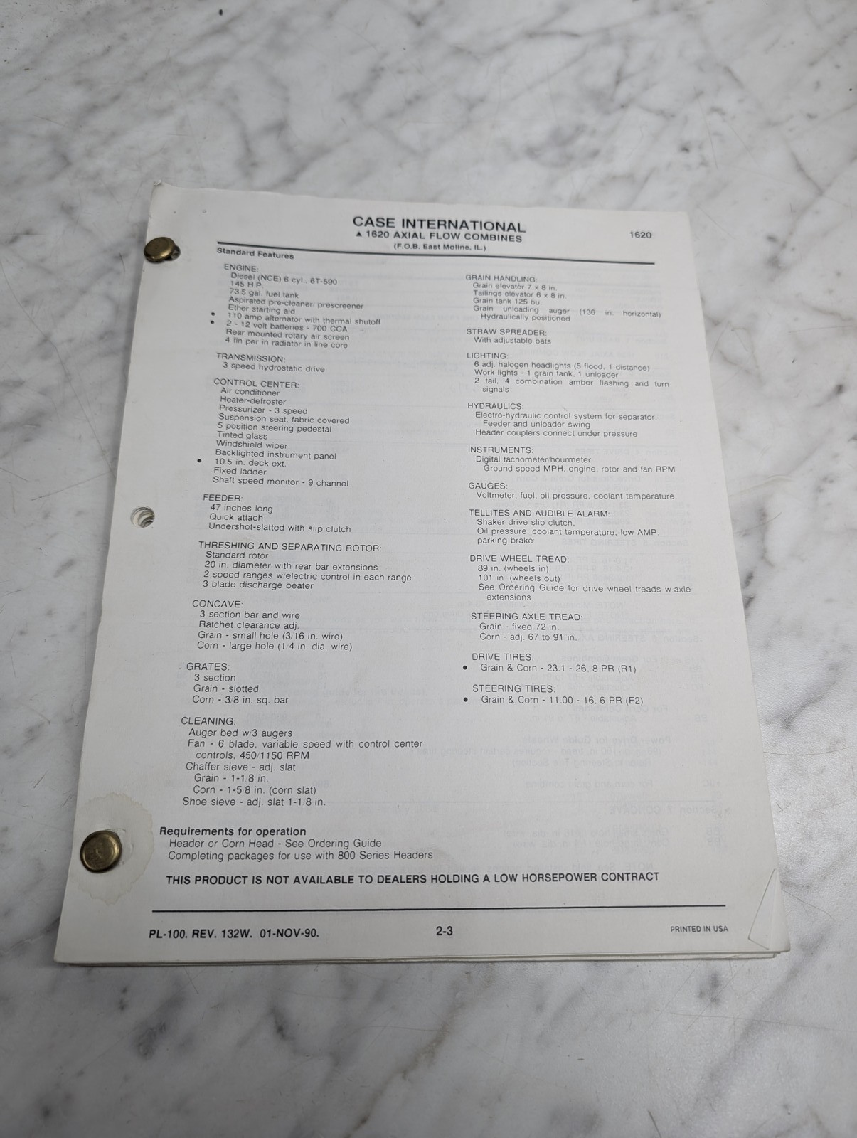Case Hay And Forage Price Lists 1620 Axial Flow Combines Pl 100 01 Nov 90