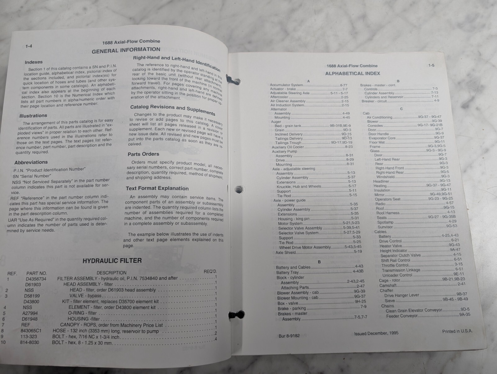 Case Ih Parts List Book Manual Catalog 1688 Axial Flow Combine Bur 8-9182 1995