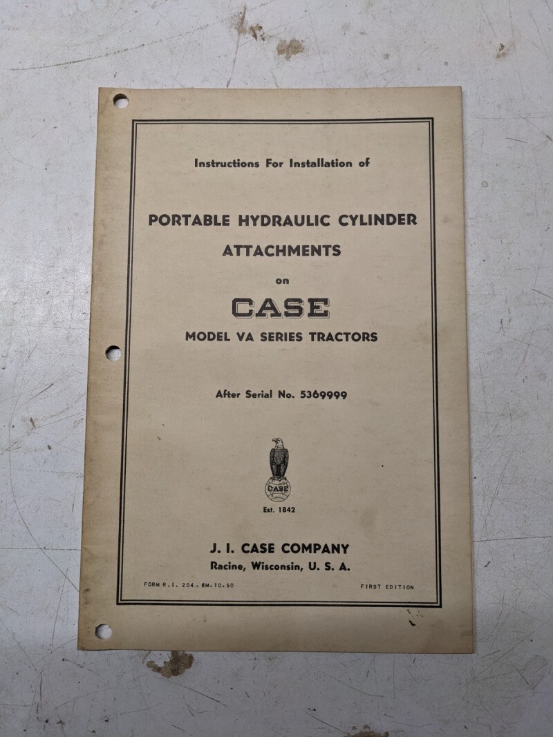 Case Instruction Manual Portable Hydraulic Cylinder Attachment Va Series Tractor
