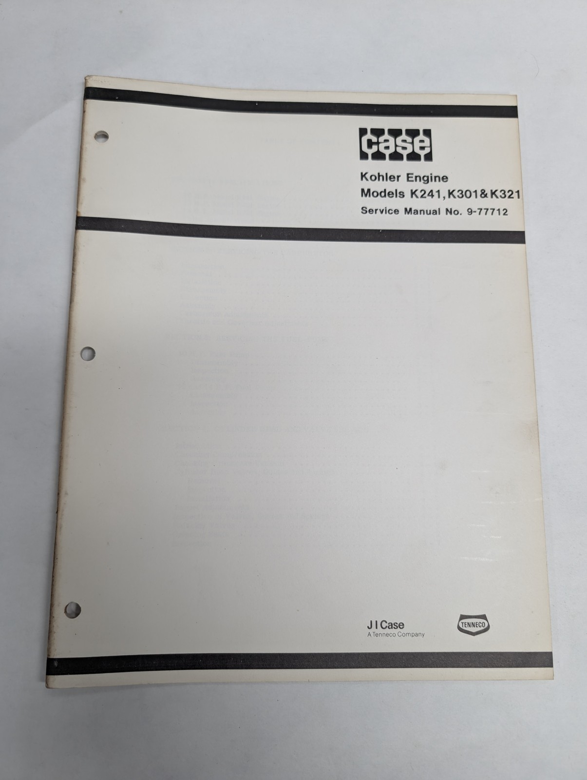 Case Kohler Engine Models K241 K301 K321 Service Manual #9-77712 Shop Book