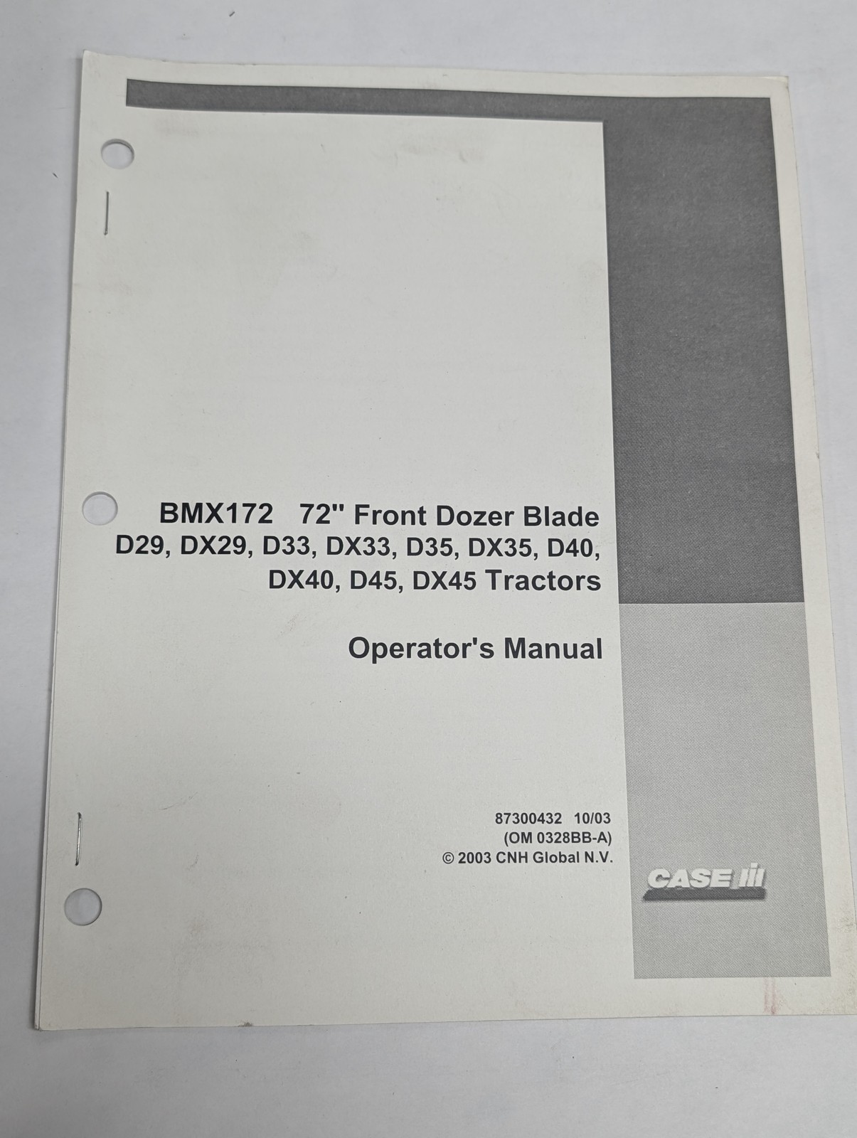 Case Operator’S Manual Bmx172 72” Front Dozer Blade D Dx 29 33 35 40 45 Tractors
