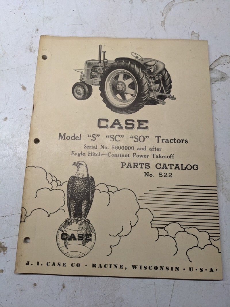 Case Parts List Book Manual Catalog Tractor Model S Sc So 522 1952