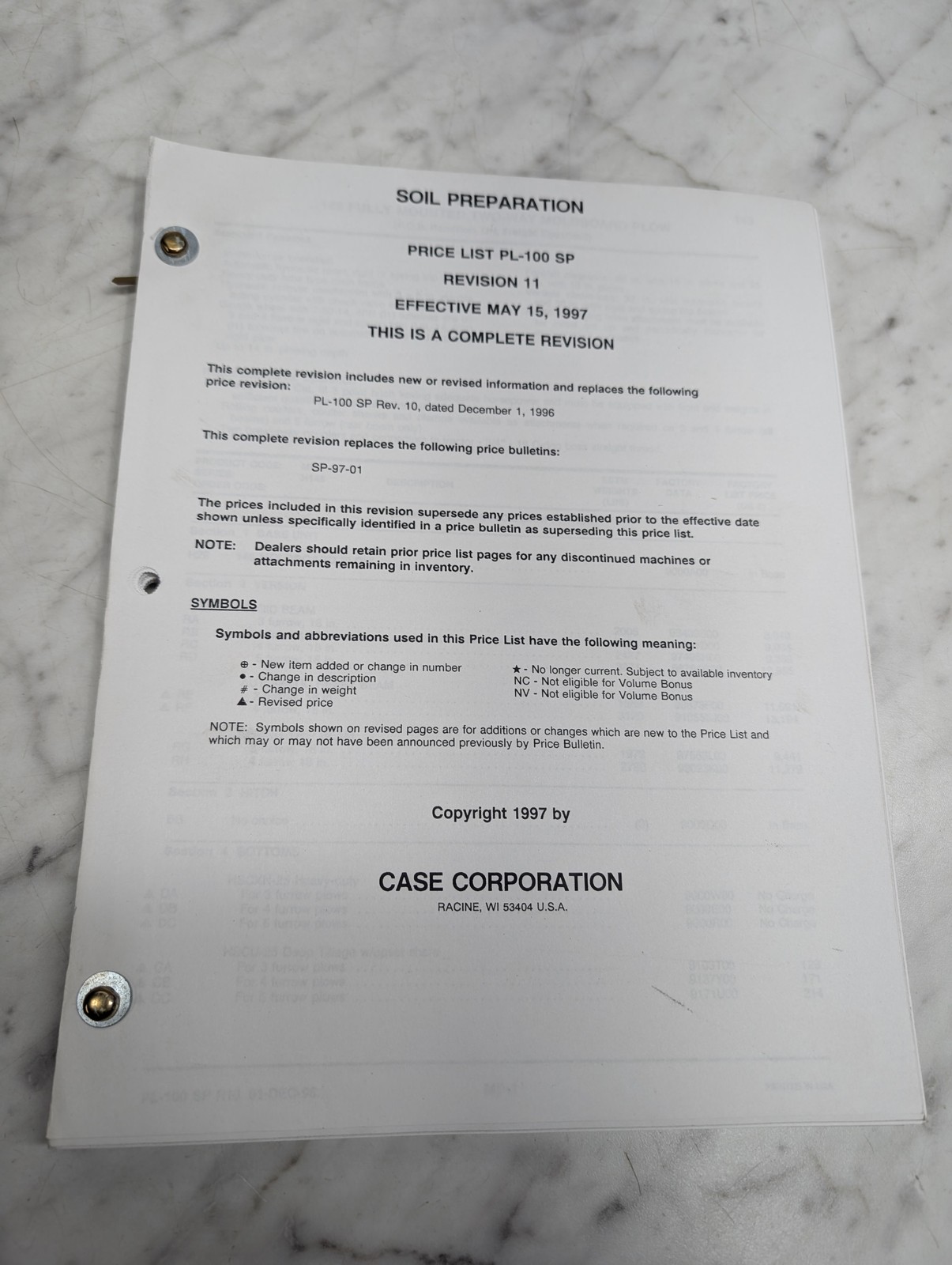 Case Pl-100 Sp Soil Preparation Price List Parts Sales Catalog