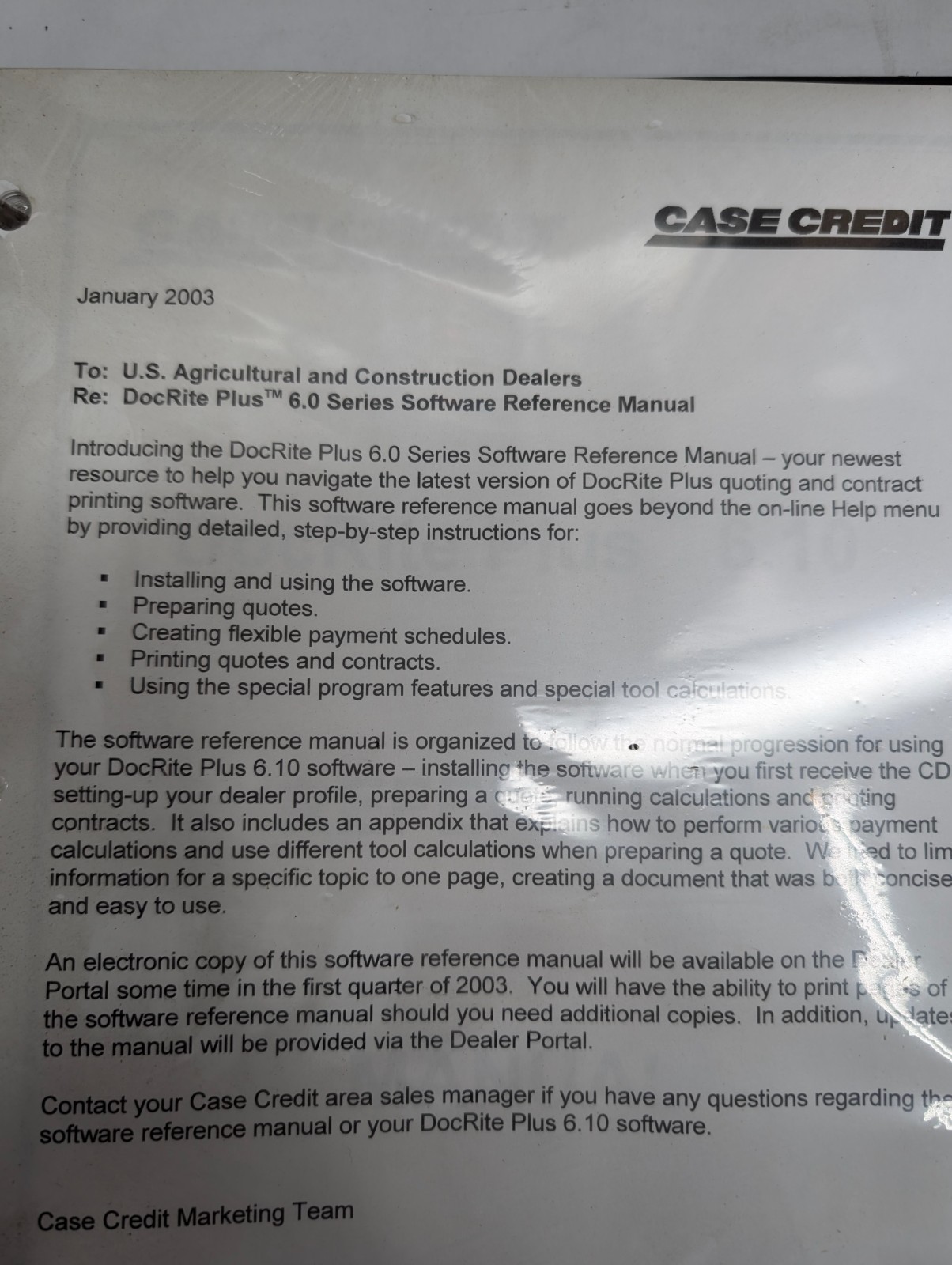 Case Tractor Credit Docrite Plus 6.0 Sales Tool 2003 Software Reference Manual