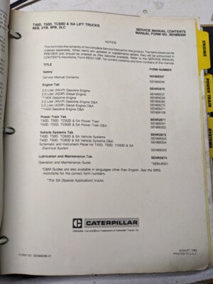 Caterpillar Cat Fork Lift Truck Service Manual T 40 50 Tc 60 D Sa 1985