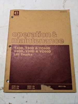 Caterpillar Cat Operation Maintenance Manual T 40 50 60 V Vc D Lift Truck 1987