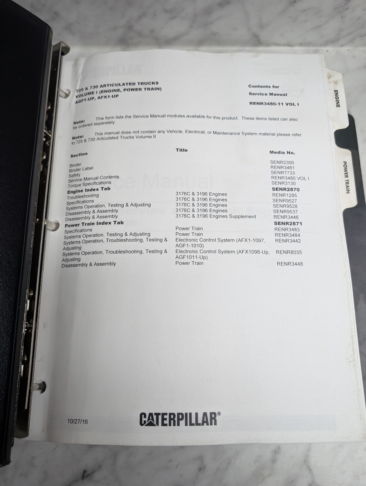 Caterpillar Cat Service Manual 725 730 Articulated Trucks Renr3480 Volume I
