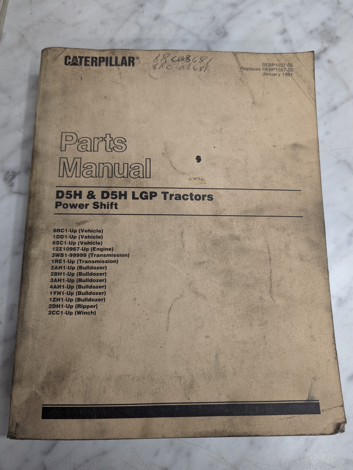 Caterpillar Cat Service Parts List Book Catalog Manual D5H / Lgp Tractors 1991