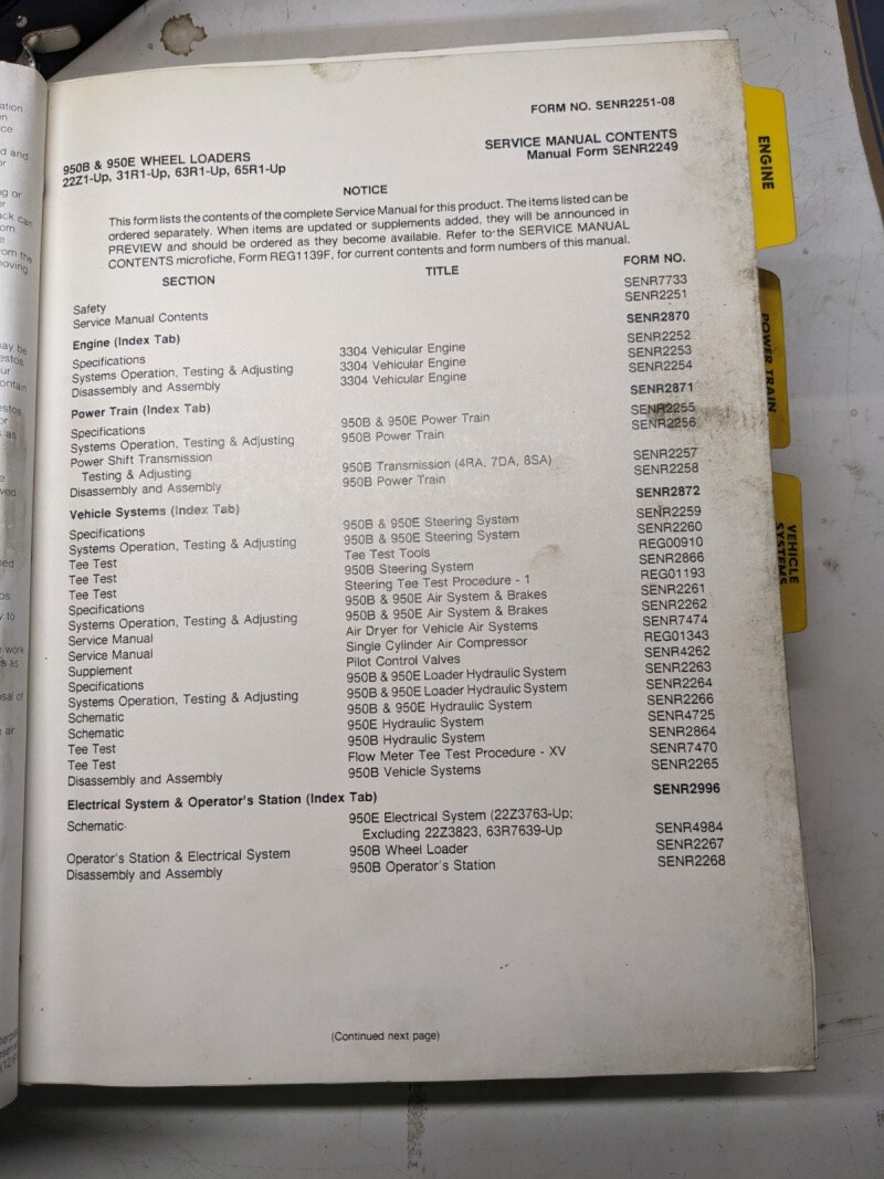 Caterpillar Cat Service Repair Maintenance Manual 950B 950E Wheel Loader Shop