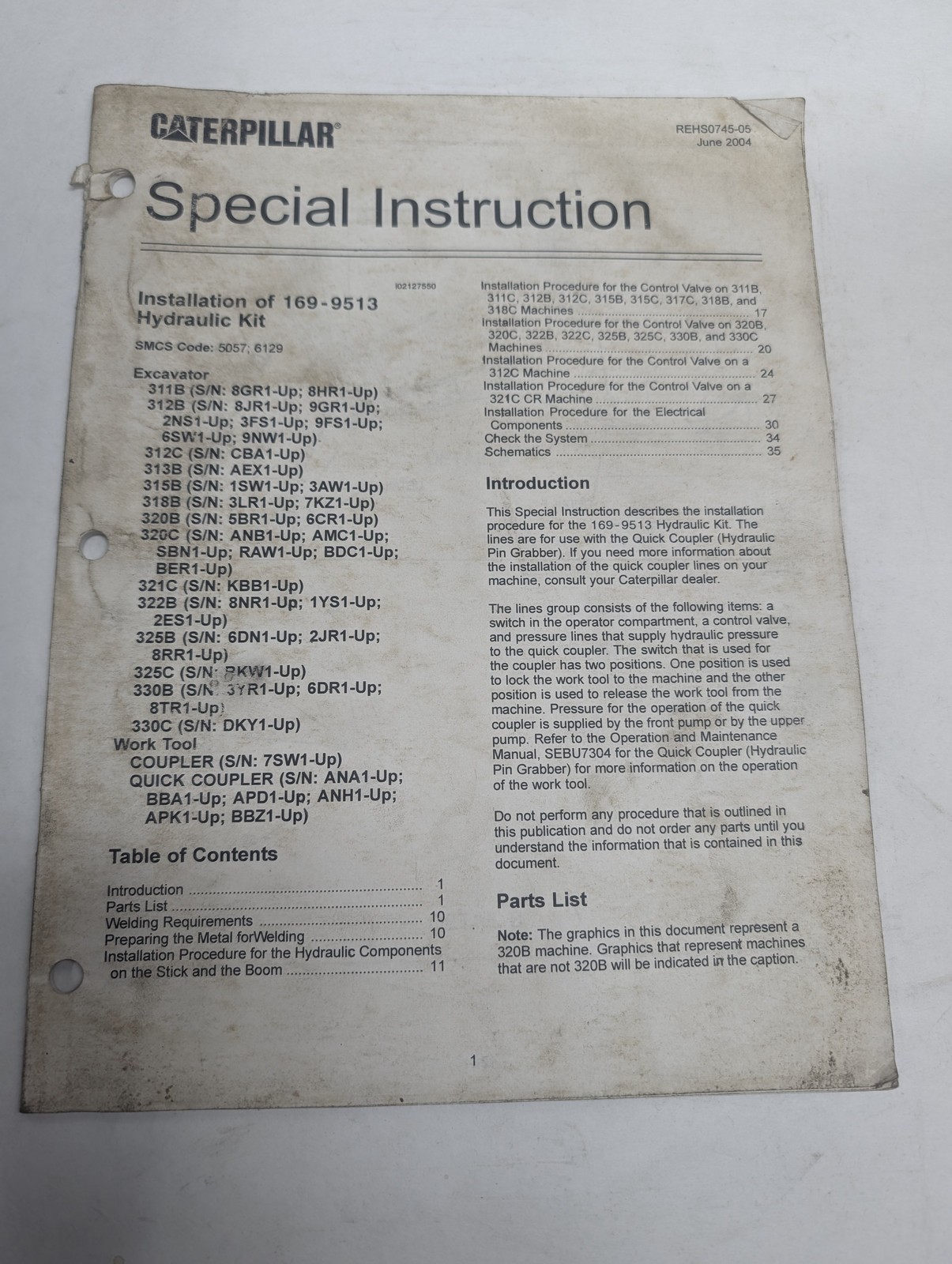 Caterpillar Special Instruction Manual 169-9513 Hydraulic Kit Shop Book Cat 2004