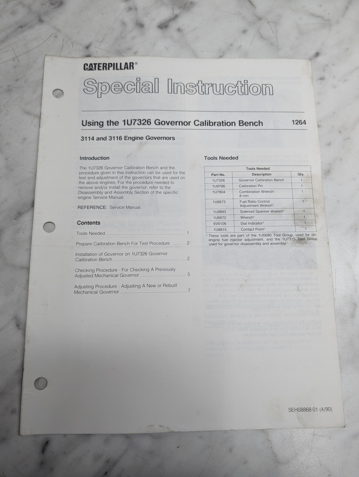 Caterpillar Special Instruction Manual Governor Calibration Bench 1U7326 1990