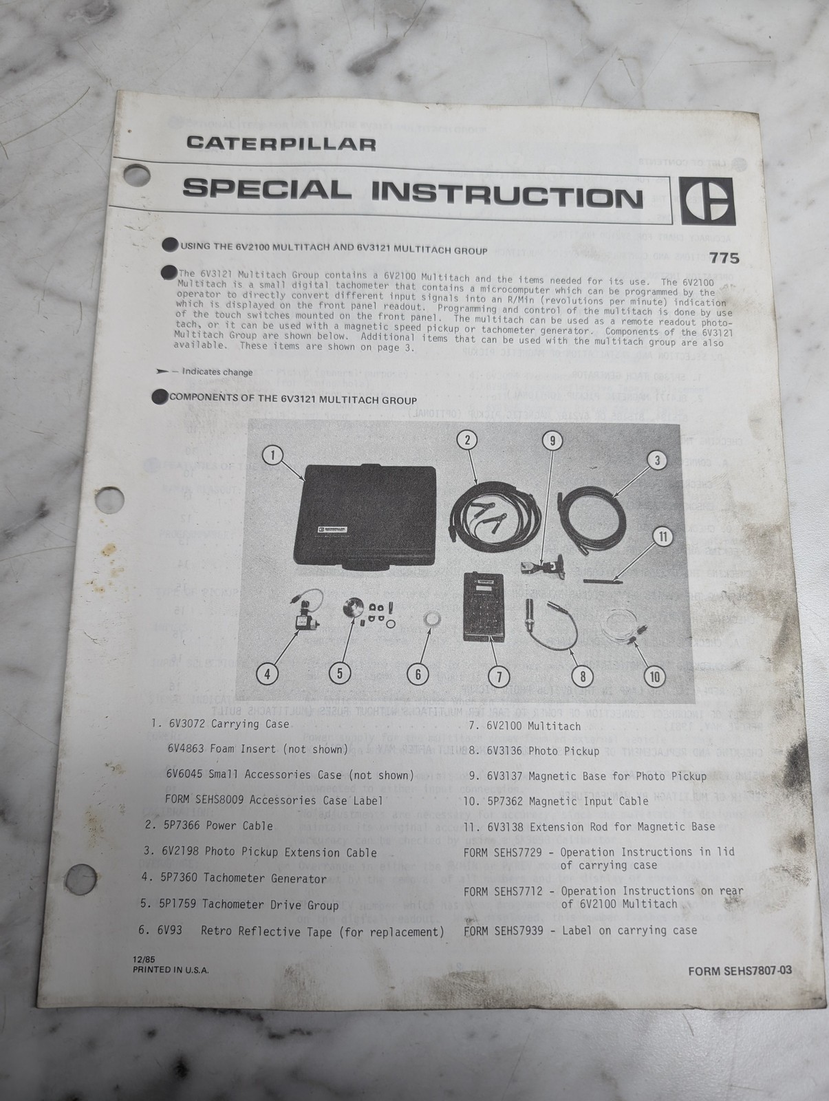 Caterpillar Special Instruction Manual Using 6V2100 Multitach 6V3121 775 1985