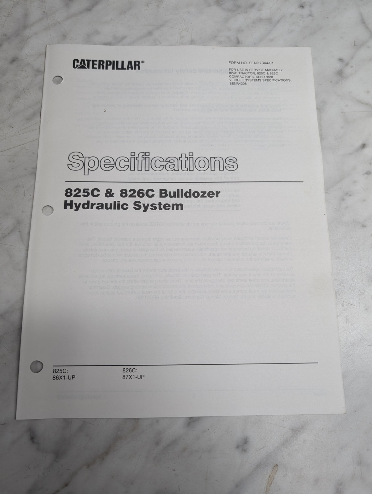 Caterpillar Specifications Manual Hydraulic System 825C 826C Dozer Senr7844-01