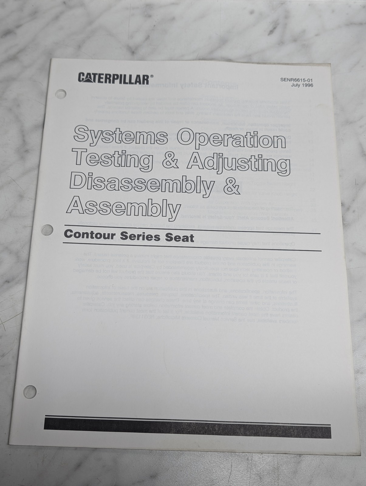 Caterpillar Systems Assembly Testing/Adjusting Contour Series Seat 1996