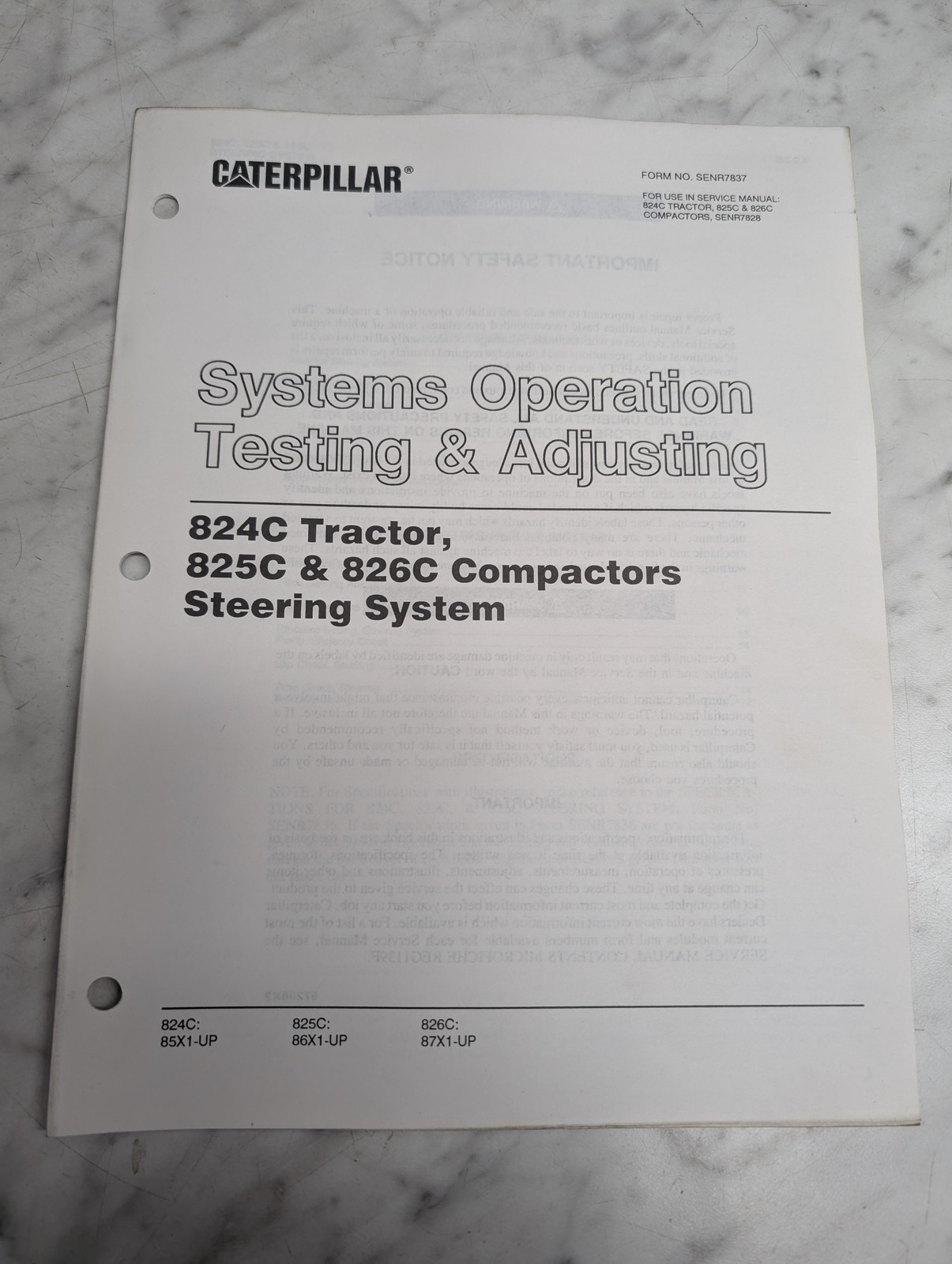 Caterpillar Systems Operation Testing Steering 824C 825C 826C Senr7837