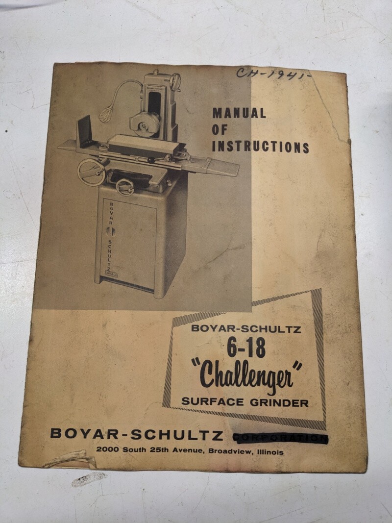 Challenger Boyar Schultz Surface Grinder Instruction Book Manual 1941 6-18
