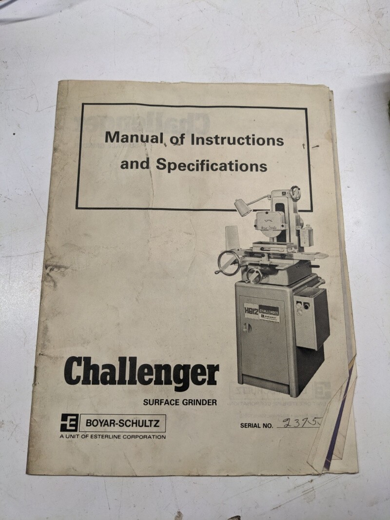 Challenger Surface Grinder Boyar Schultz Instruction Book Manual 1974