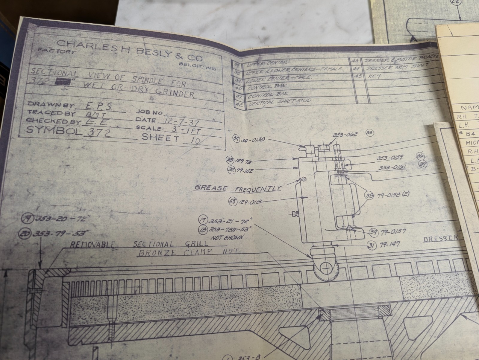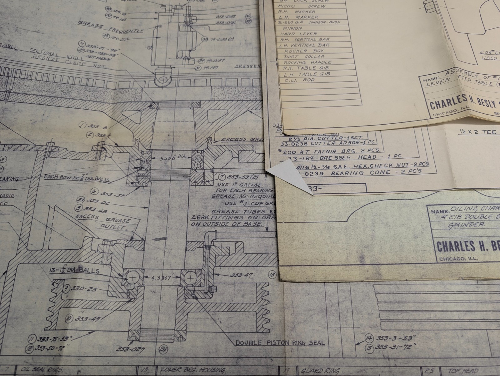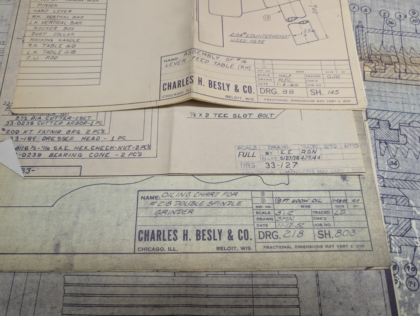 Charles Besly 372 Grinder Machine Tool Drawings Diagrams Engineering Blue Prints