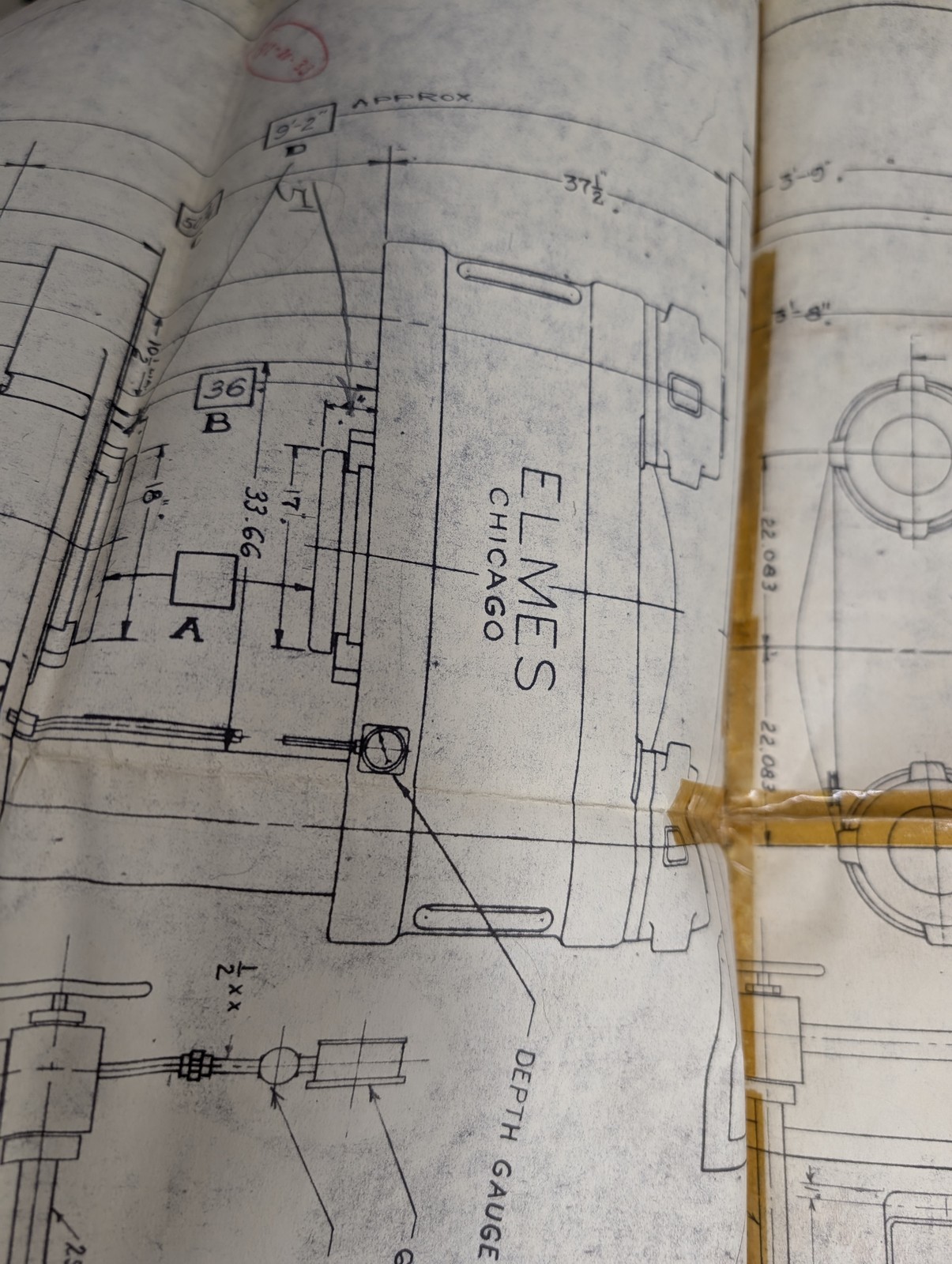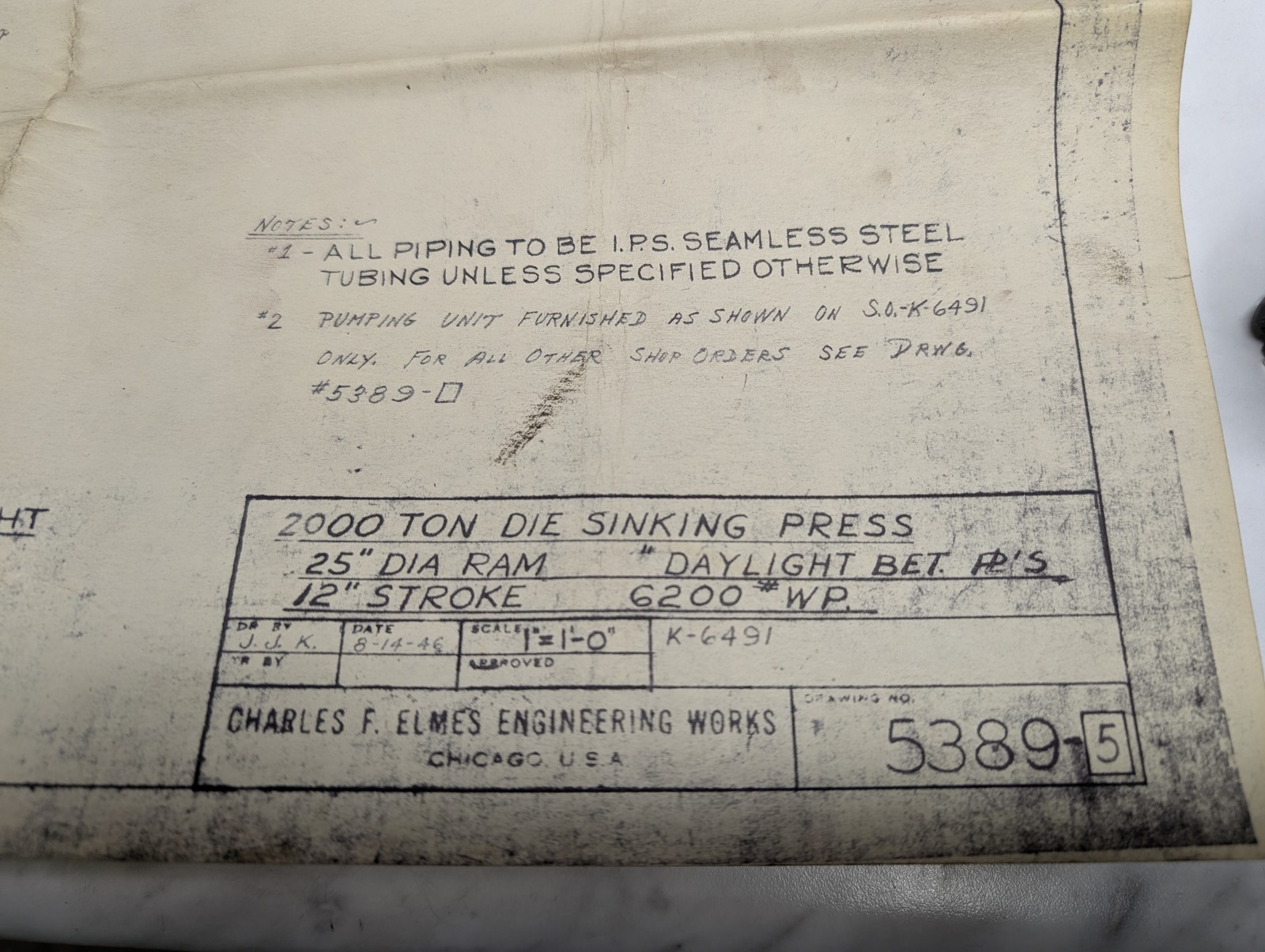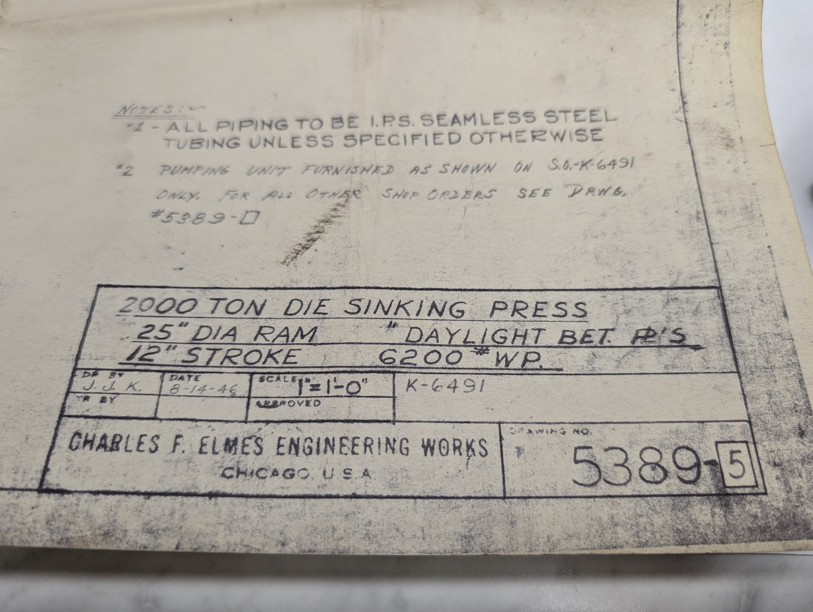 Charles Elmes 2000 Ton Die Sinking Press Layout Drawing #5389-5 6200# Wp