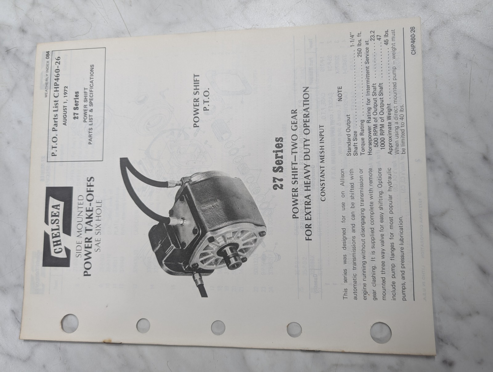 Chelsea Dana Service/Repair Parts List Catalog Manual 27 Series Power Shift 1972