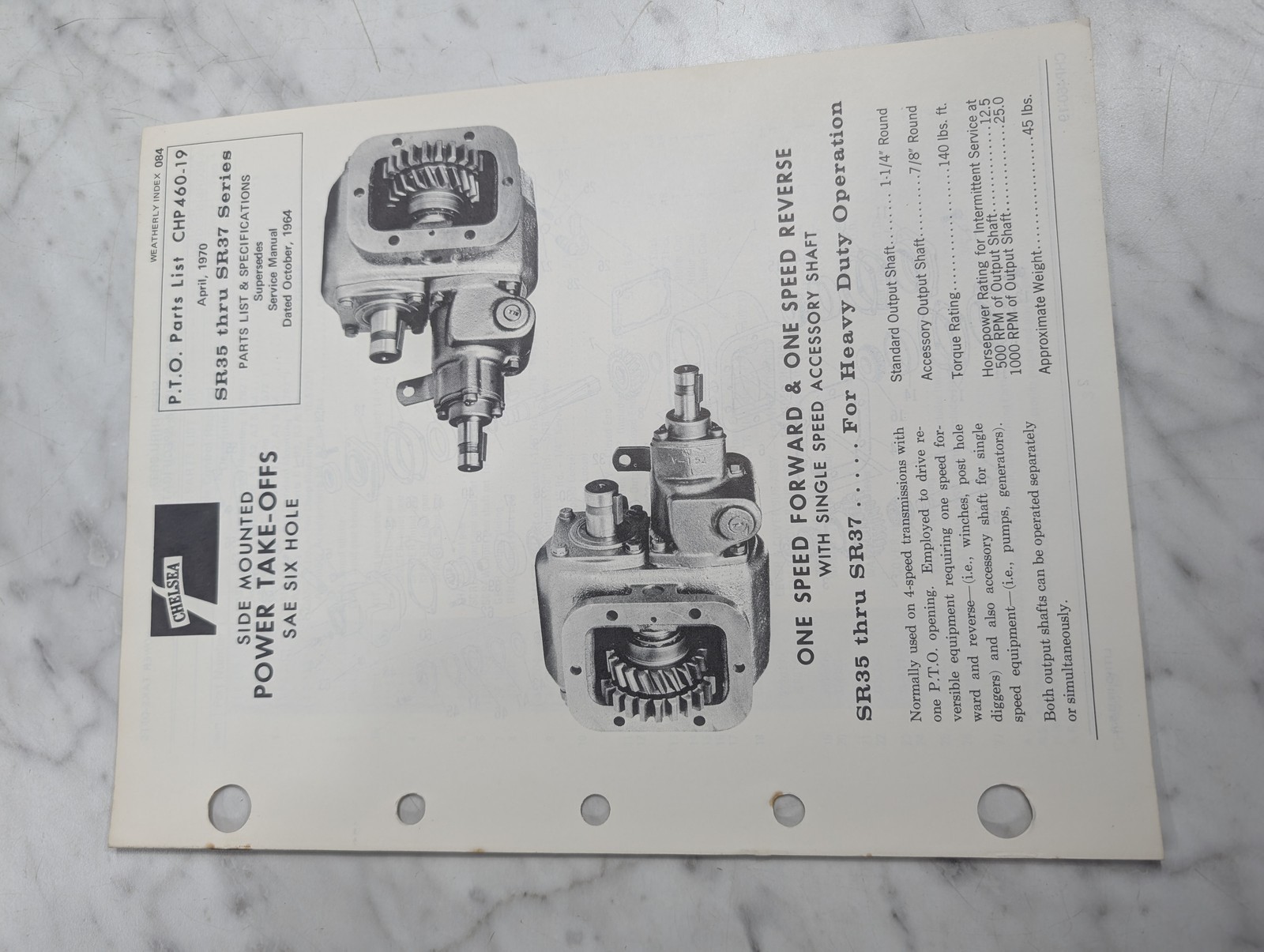 Chelsea Dana Service/Repair Parts List Catalog Manual S35-S37 Series Pto 1964