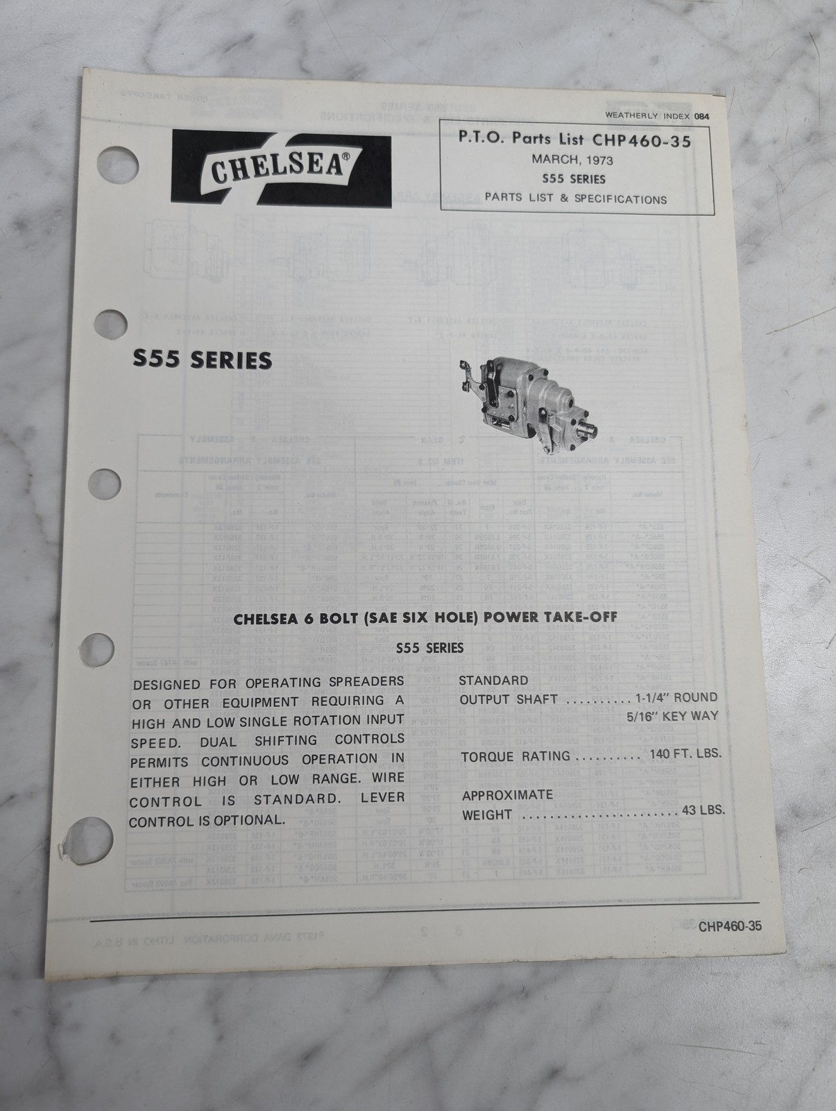Chelsea Dana Service/Repair Parts List Catalog Manual S55 Model 1973 Pto