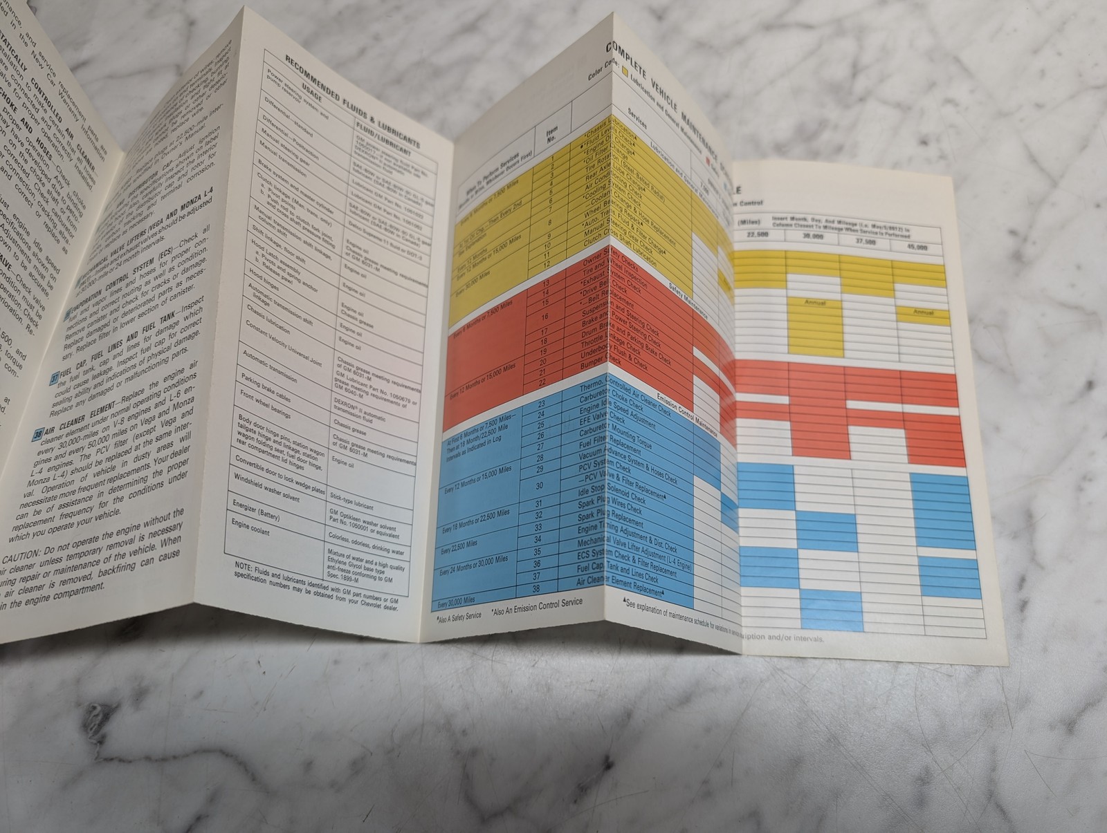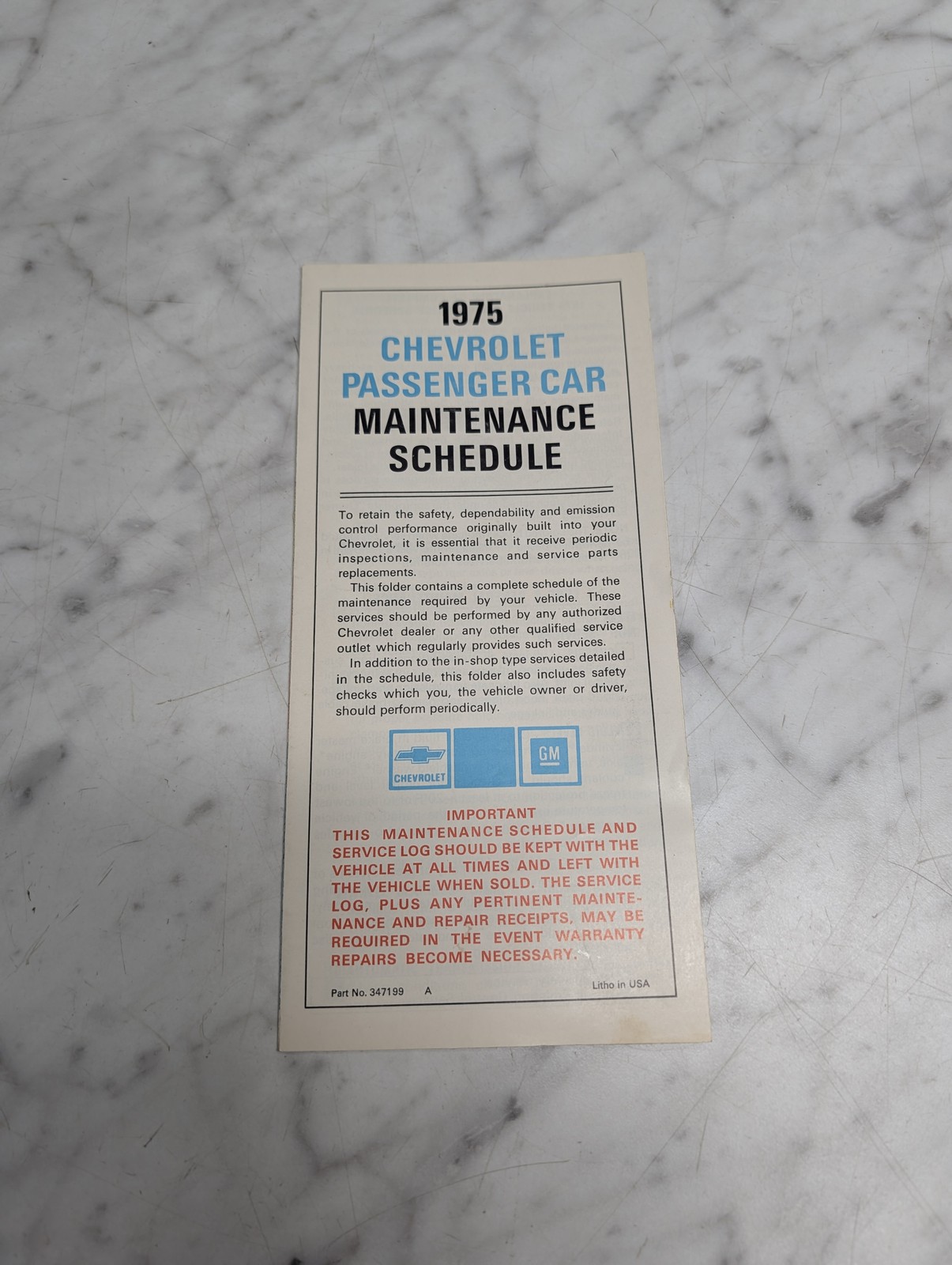 Chevrolet 1975 Passenger Car Maintenance Schedule Gm Part No 347199