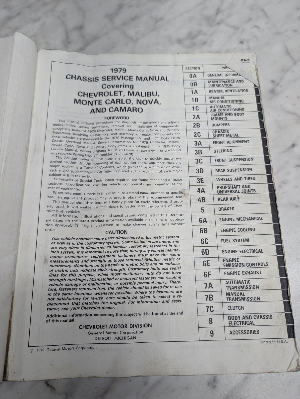 Chevrolet 1979 Chassis Service Manual Repair Shop Malibu Monte Carlo Nova Camaro