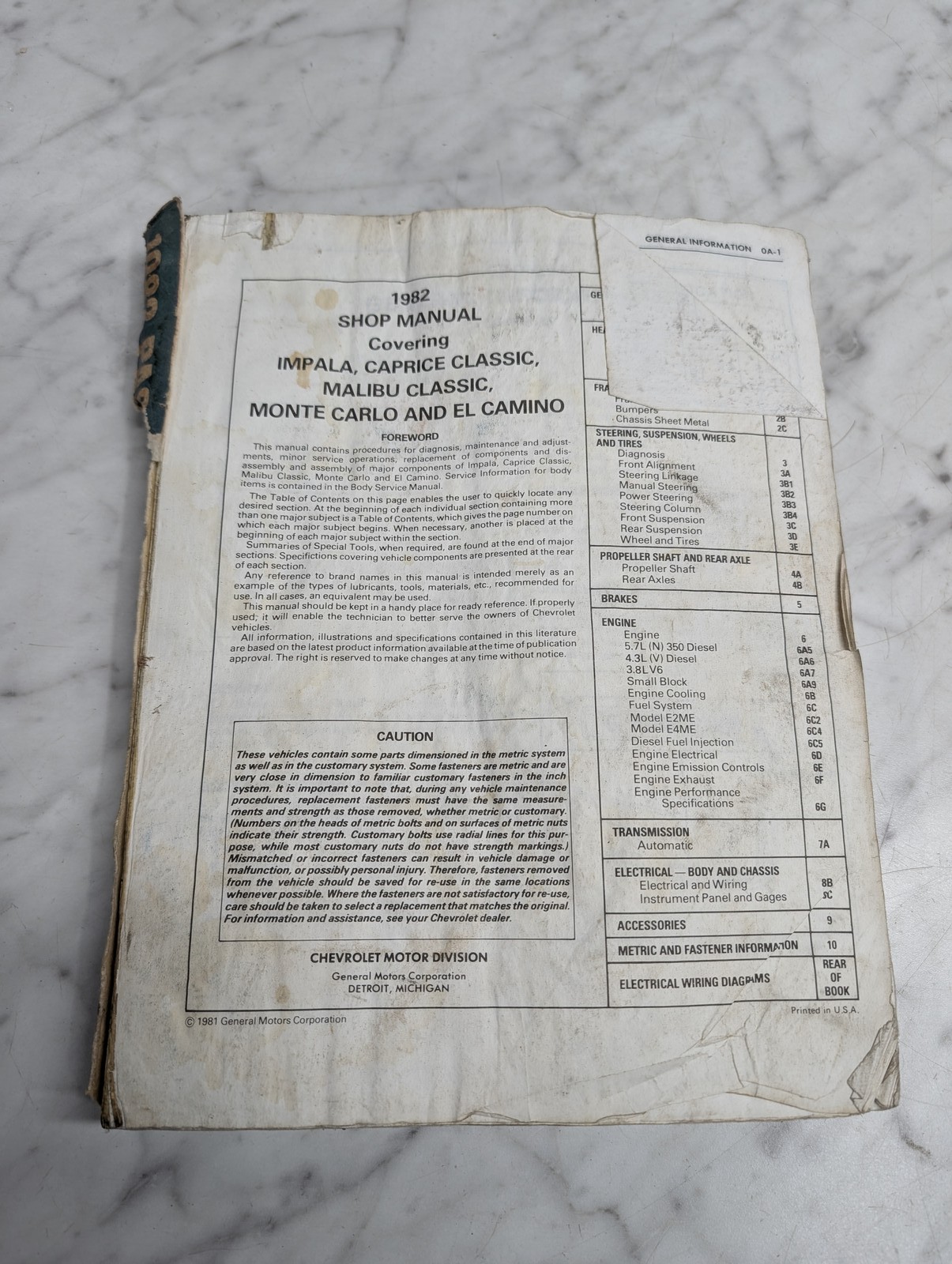 Chevrolet 1982 Impala Caprice Classic Malibu Monte Carlo Shop Service Manual