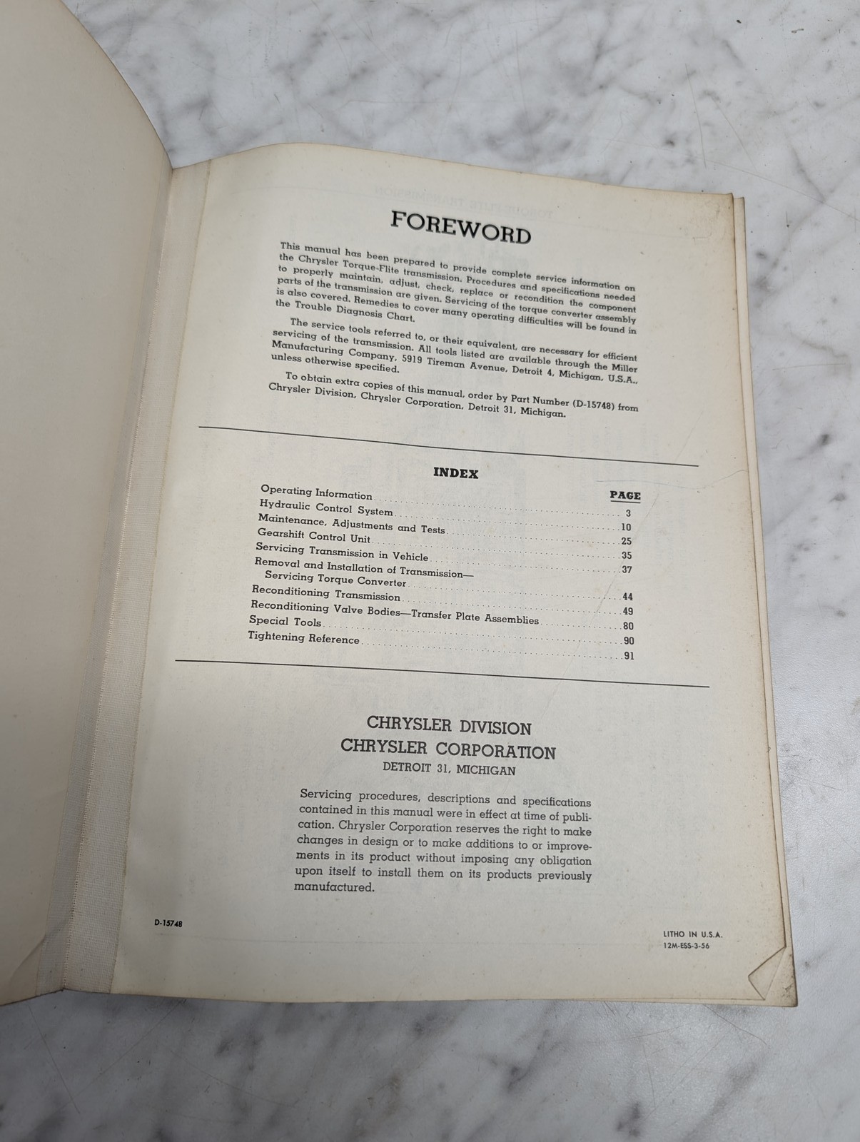 Chrysler Imperial Torque Flite Transmission Service Manual Repair 1956 Shop Book