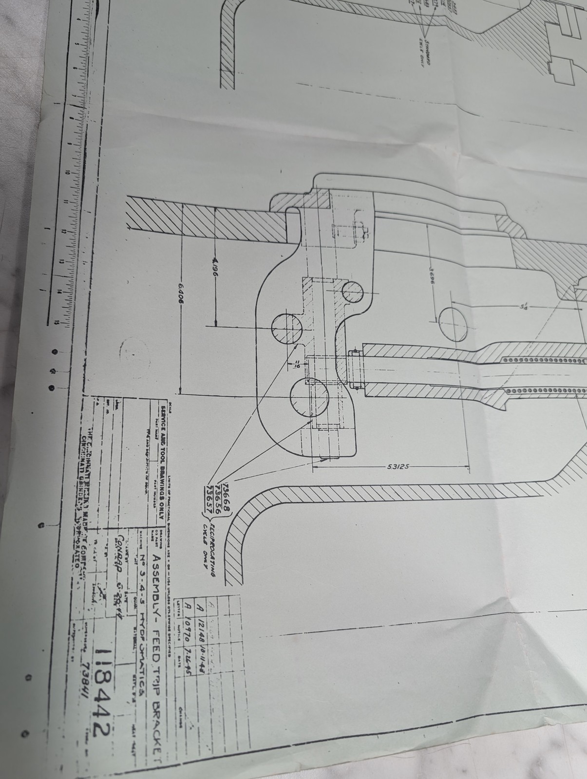 Cincinnati Assembly Drawing Print Feed Trip Bracket #3 4 5 Hydro. Milling 118442