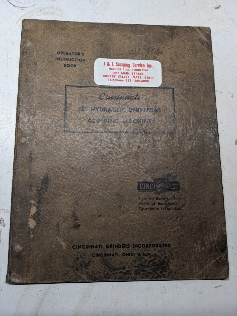 Cincinnati Hydraulic Grinding Operator Service Manual 12” Shop Instruction Book