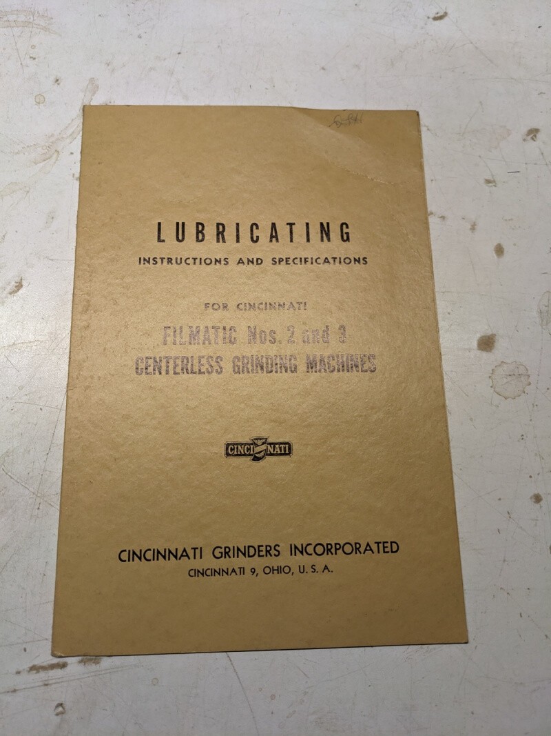 Cincinnati Lubrication Centerless Grinding Machine Filmatic #2 3 Instruction