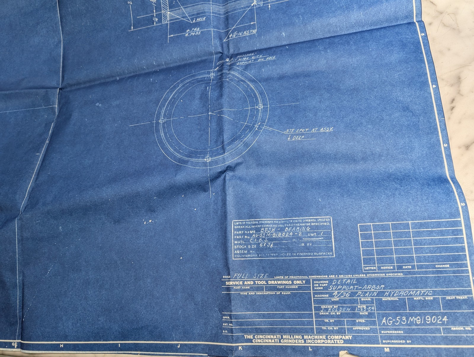 Cincinnati Mach Tool Drawing 4/36 Plain Hydromatic Ag-53M-919024 Support Arbor