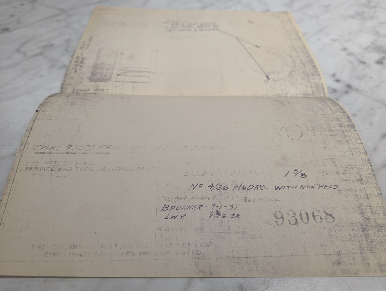 Cincinnati Machine 4/36 Hydromatic Print Drawing 93068 Motor Sleeve 1-5/8
