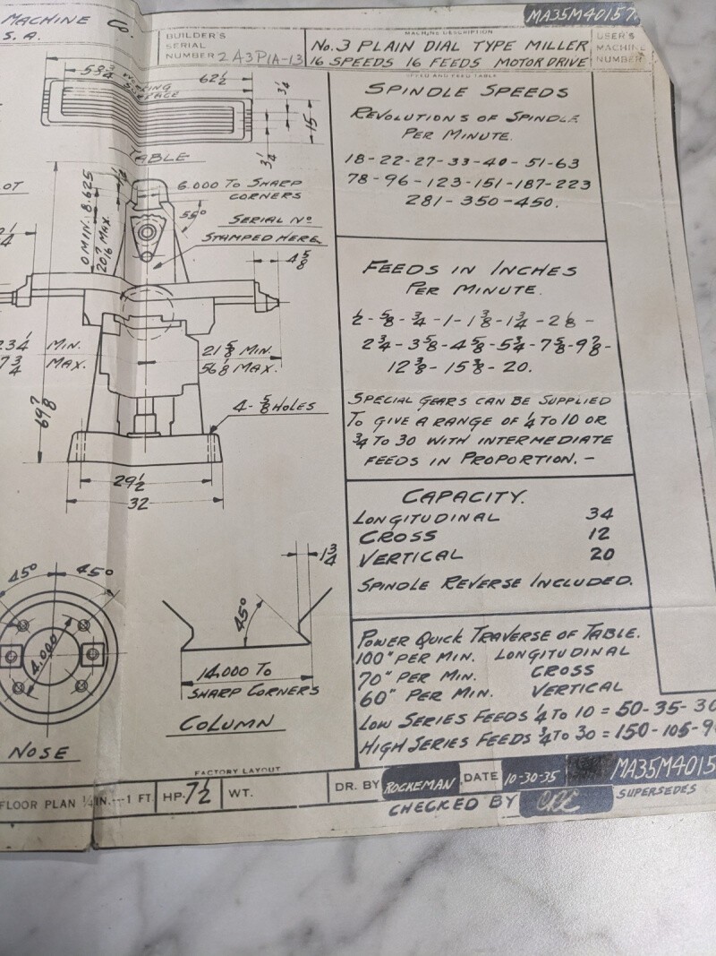 Cincinnati Machine Floor Plan Print Diagram Drawing #3 Plain Dial Milling 1935