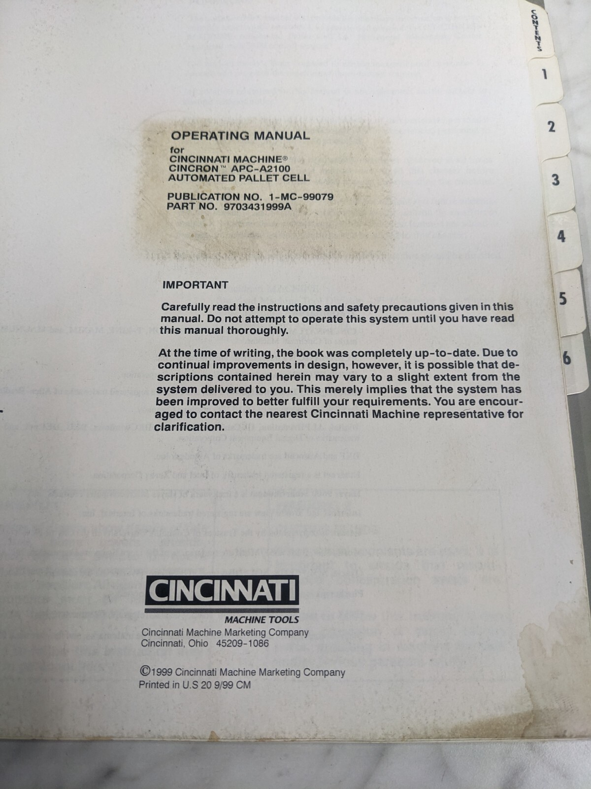 Cincinnati Machine Tool Cincron Apc-A2100 Automated Pallet Cell Operator Manual