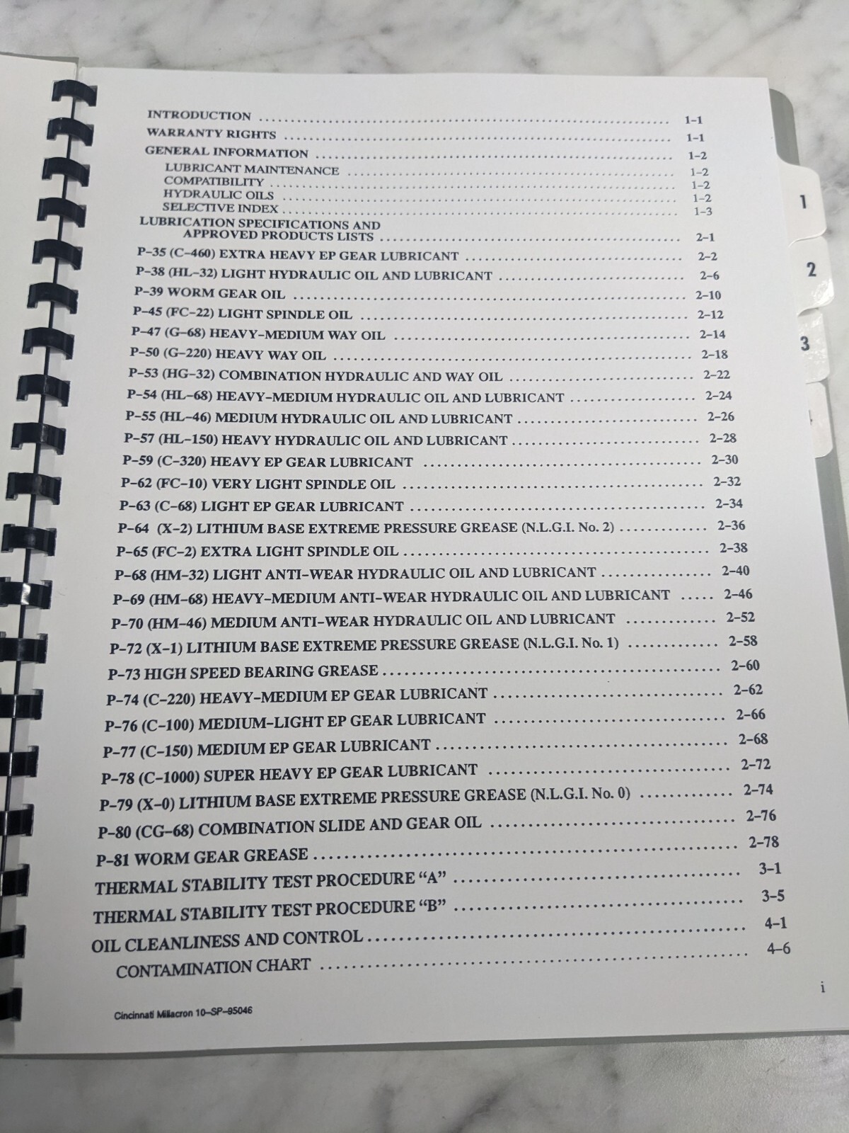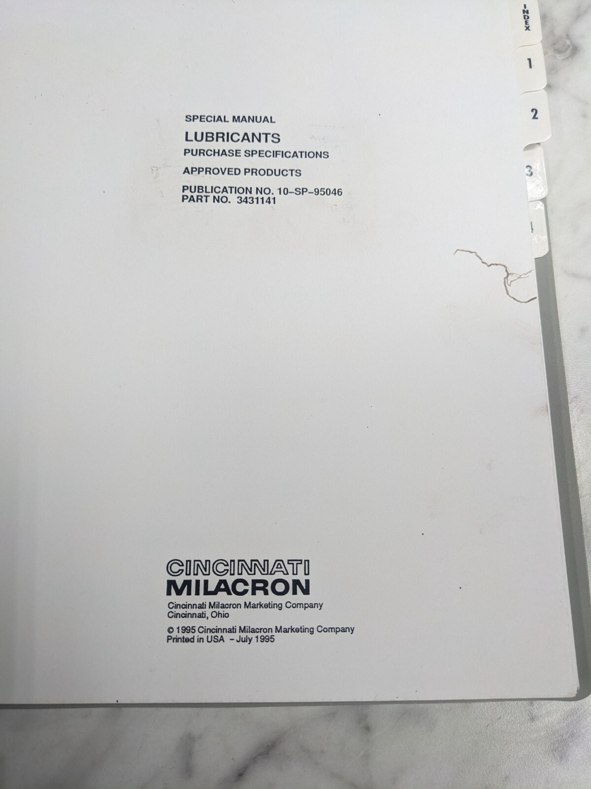 Cincinnati Milacron Lubricants Special Operator/Service Manual Approved 1995