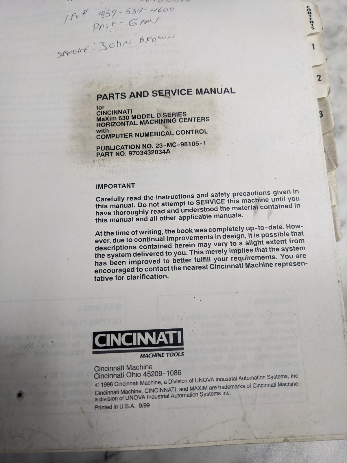 Factory service manual for cincinnati.
