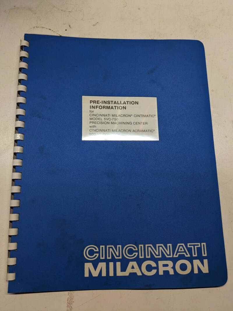 Cincinnati Milacron Pre Install Info Manual Cintimatic 5Vc-750 1984 14-25-75