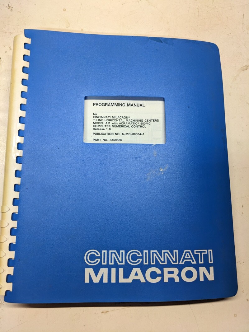 Cincinnati Milacron Programming Service Manual T Line 6-Mc-88064-1 1989 3359886